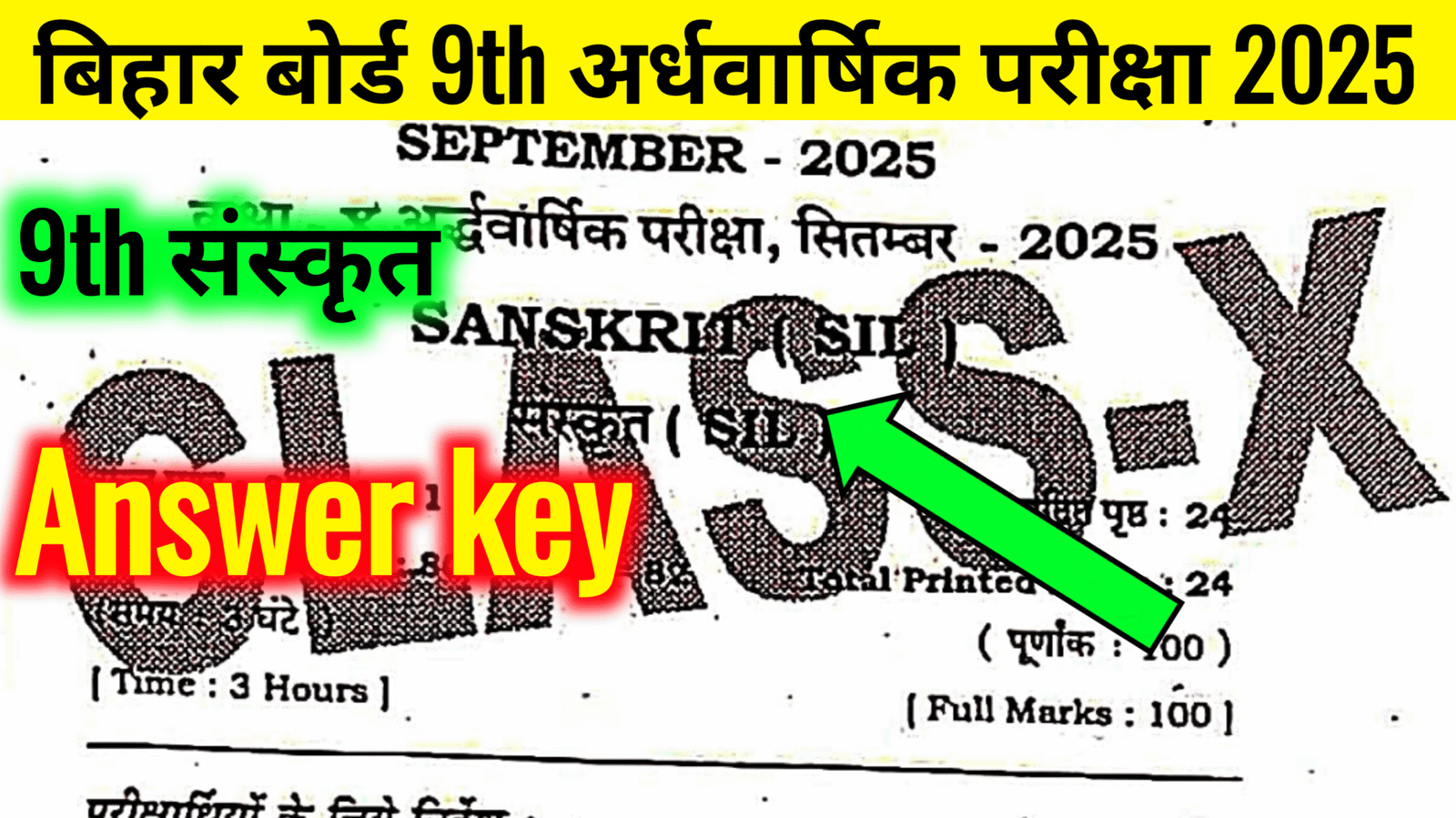 9th Sanskrit 24 September Answer Key Half Yearly Exam 2025: बिहार बोर्ड 9वीं संस्कृत अर्धवार्षिक परीक्षा का आंसर की, यहाँ से प्राप्त करें।
