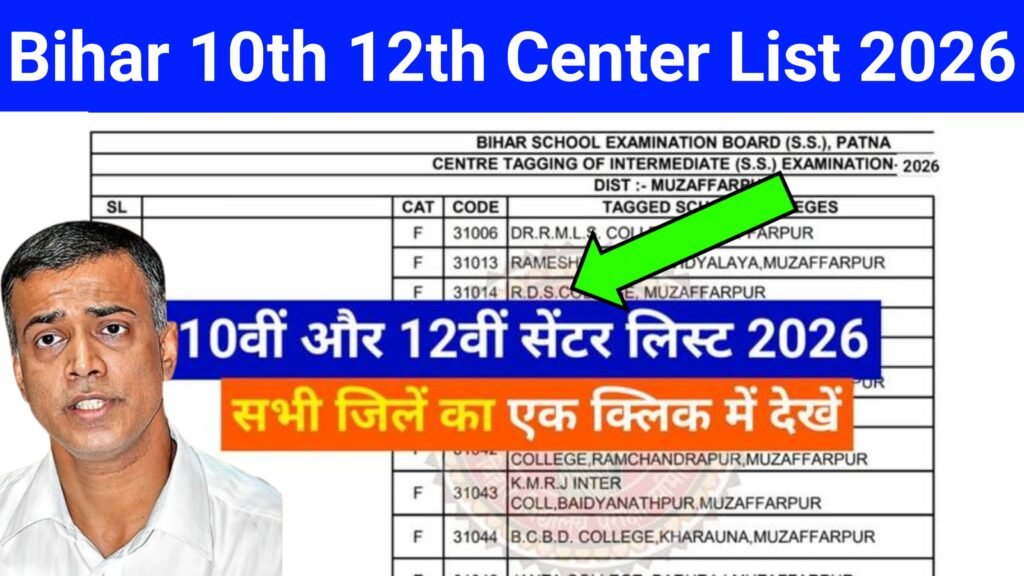 Bihar Board 10th 12th Center List 2026: अभी-अभी कक्षा 10वीं और 12वीं वार्षिक परीक्षा 2026 का परीक्षा केंद्र जारी हुआ, यहां से देखें। आप भी बिहार बोर्ड के तरफ से मैट्रिक इंटर की फाइनल परीक्षा 2026 में देने वाले हैं तो आपको पता है कि फरवरी में आप लोगों की परीक्षा आयोजित होने वाली है … Continue reading Bihar Board 10th 12th Center List 2026: अभी-अभी कक्षा 10वीं और 12वीं वार्षिक परीक्षा 2026 का परीक्षा केंद्र जारी हुआ, यहां से देखें।