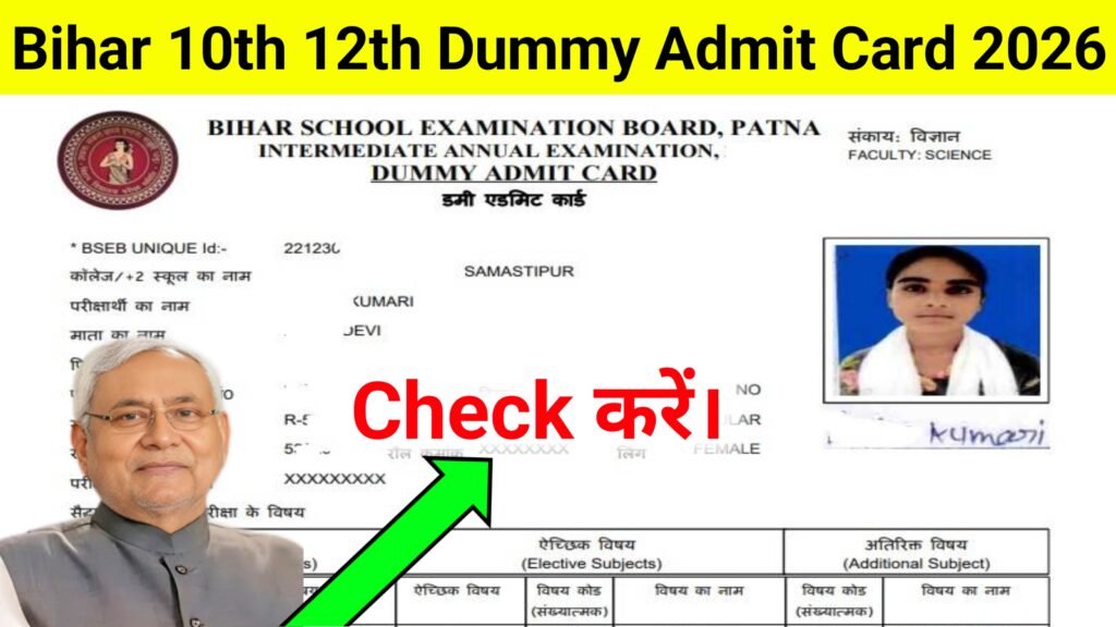 Bihar board 10th 12th Dummy Admit Card 2026 Jari: बिहार बोर्ड ने अचानक मैट्रिक और इंटर का डमी एडमिट कार्ड किया जारी, यहाँ से चेक करें। जितने भी विद्यार्थी बिहार स्कूल एग्जामिनेशन बोर्ड की तरफ से मैट्रिक और इंटर की फाइनल परीक्षा 2026 में देने वाले हैं आप सभी विद्यार्थियों के लिए खुशखबरी की बात … Continue reading Bihar board 10th 12th Dummy Admit Card 2026 Jari: बिहार बोर्ड ने अचानक मैट्रिक और इंटर का डमी एडमिट कार्ड किया जारी, यहाँ से चेक करें।