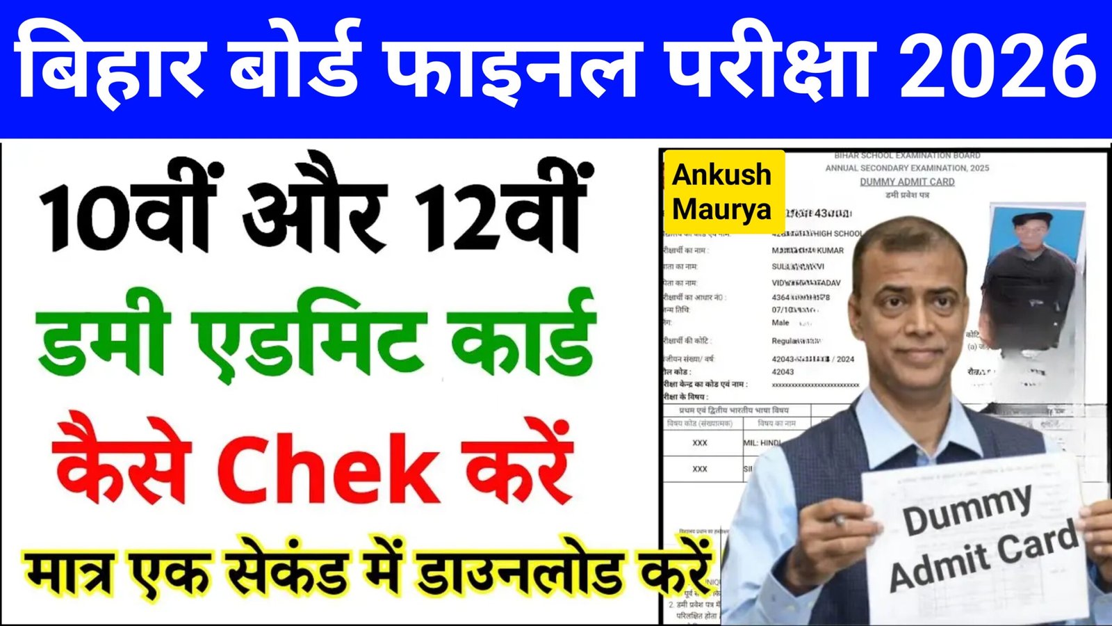 नमस्कार दोस्तों अगर आप भी बिहार बोर्ड के तरफ से मैट्रिक और इंटर में अध्ययन कर रहे हैं और आप फाइनल परीक्षा 2026 में देने वाले हैं तो आपके लिए खुशखबरी की बात है क्योंकि बिहार बोर्ड के तरफ से जो फाइनल डमी एडमिट कार्ड है उसको लेकर अपडेट जारी कर दिया गया है आप हमारे साथ बने रहिए हम आपको बतलाएंगे की आप किस प्रकार फाइनल डमी एडमिट कार्ड प्राप्त कर सकते हैं
