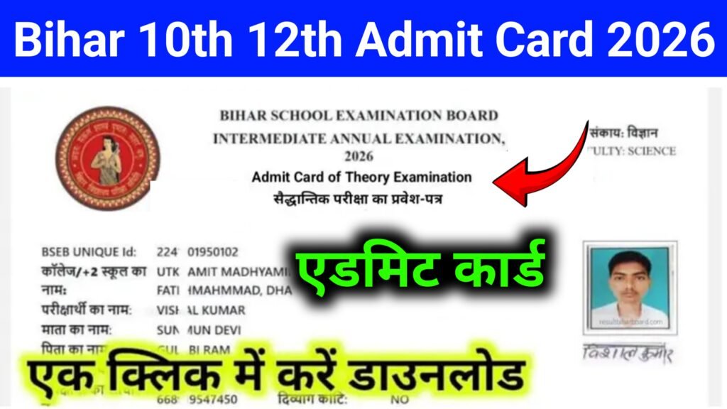 Bihar Board 10th 12th Original Admit Card 2026: बिहार बोर्ड कक्षा 10वीं 12वीं फाइनल एडमिट कार्ड जारी, मात्र एक क्लिक में डाउनलोड करें। आप बिहार स्कूल एग्जामिनेशन बोर्ड के तरफ से मैट्रिक इंटर फाइनल परीक्षा की तैयारी कर रहे हैं तो यह आर्टिकल आपके लिए काफी ज्यादा महत्वपूर्ण होने वाला है क्योंकि आप सभी जानते … Continue reading Bihar Board 10th 12th Original Admit Card 2026: बिहार बोर्ड कक्षा 10वीं 12वीं फाइनल एडमिट कार्ड जारी, मात्र एक क्लिक में डाउनलोड करें।