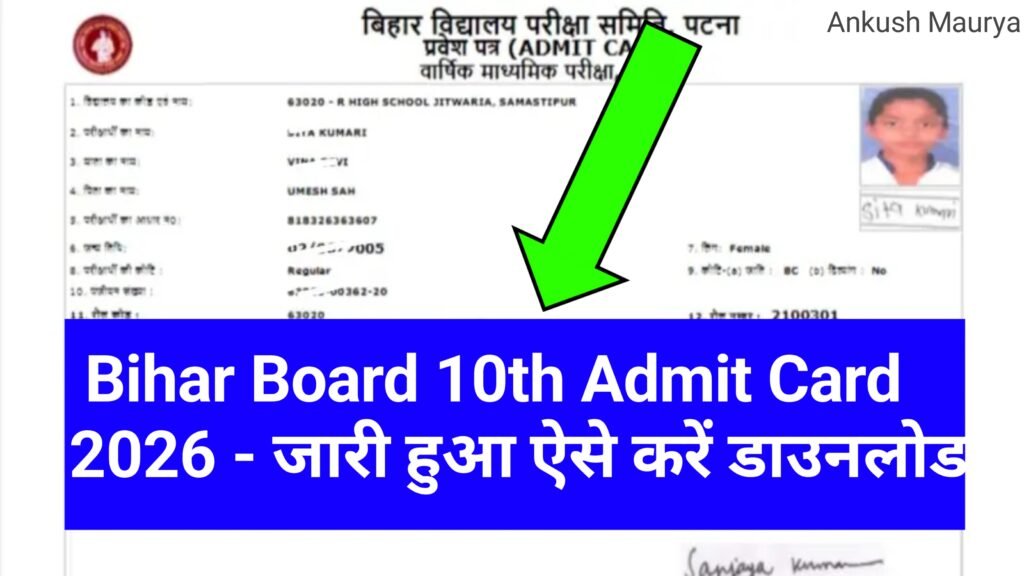 Bihar Board 10th Admit Card 2026: बिहार बोर्ड ने मैट्रिक का एडमिट कार्ड किया जारी, यहाँ से प्राप्त करें सभी विधार्थी:- आप सभी विद्यार्थियों को पता है कि बिहार बोर्ड के तरफ से मैट्रिक फाइनल परीक्षा 2026, 17 फरवरी से शुरू की जाएगी इस परीक्षा में शामिल होने वाले लाखों विद्यार्थी इंतजार कर रहे हैं … Continue reading Bihar Board 10th Admit Card 2026: बिहार बोर्ड ने मैट्रिक का एडमिट कार्ड किया जारी, यहाँ से प्राप्त करें सभी विधार्थी