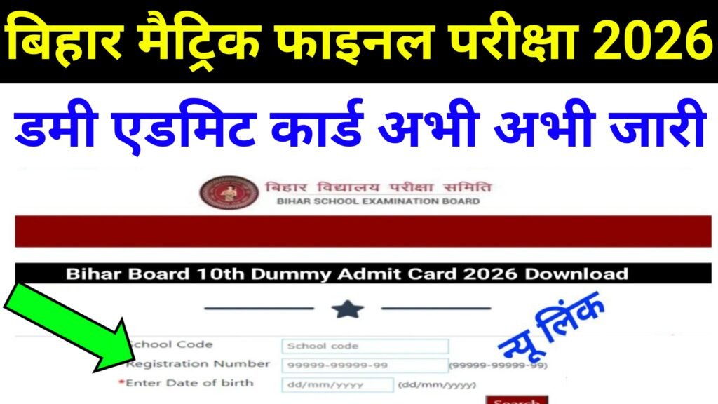 Bihar Board 10th Dummy Admit Card 2026: कक्षा दसवीं का डमी एडमिट कार्ड जारी, डमी एडमिट कार्ड की संपूर्ण प्रक्रिया यहां से देखें:- बिहार बोर्ड के तरफ से मैट्रिक में अध्ययन कर रहे हैं विद्यार्थियों के लिए बहुत ही बड़ी खुशखबरी है आप सभी को पता है कि फरवरी महीने में आप लोग की फाइनल … Continue reading Bihar Board 10th Dummy Admit Card 2026: कक्षा दसवीं का डमी एडमिट कार्ड जारी, डमी एडमिट कार्ड की संपूर्ण प्रक्रिया यहां से देखें