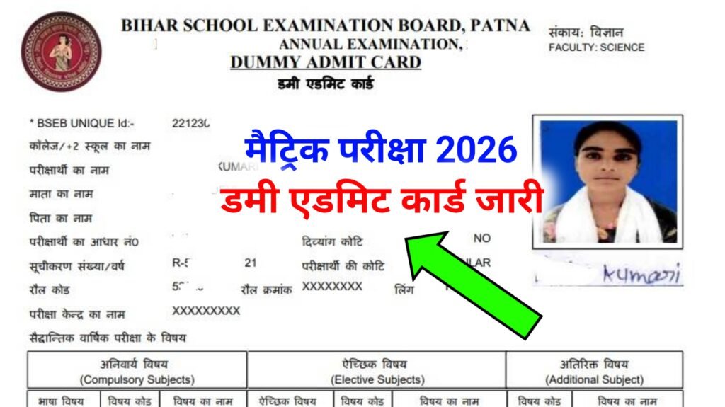 Bihar board 10th Dummy Admit Card 2026: बिहार बोर्ड ने अचानक मैट्रिक का डमी एडमिट कार्ड जारी, यहाँ से डाउनलोड करें।