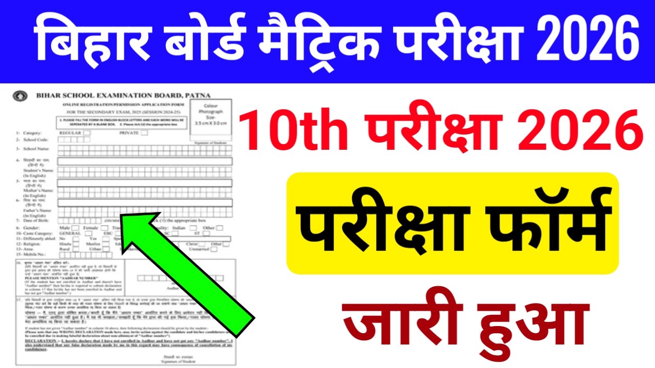 आप भी बिहार बोर्ड के तरफ से अभी 10वीं कक्षा में अध्ययन कर रहे हैं तो आपके लिए बिहार स्कूल एग्जामिनेशन बोर्ड के तरफ से एक ऑफिशल नोटिफिकेशन जारी किया गया है जिसमें बतलाया गया है कि मैट्रिक फाइनल परीक्षा 2026 का फॉर्म भरना शुरू कर दिया गया है