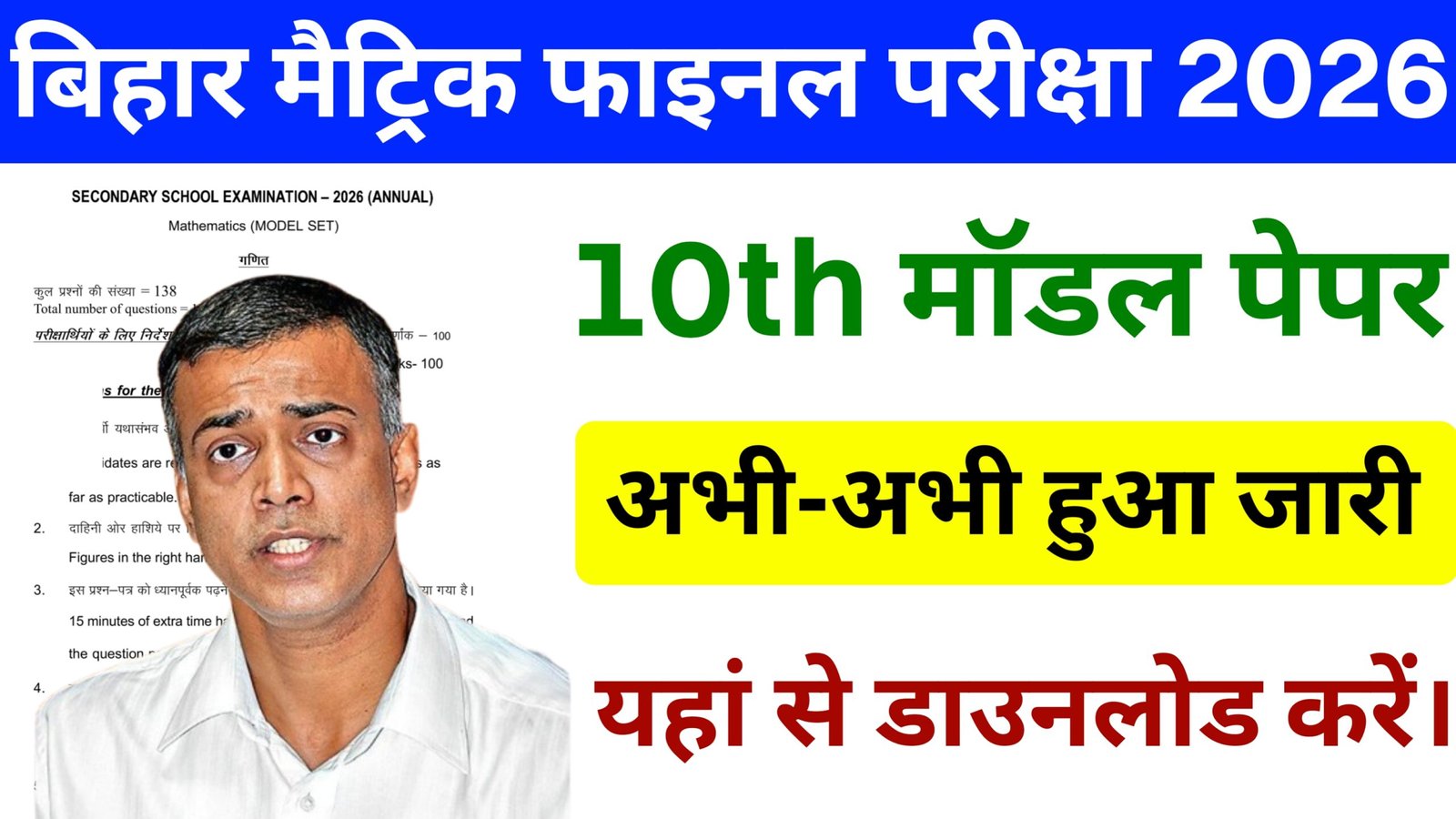 नमस्कार दोस्तों अगर आप भी बिहार बोर्ड मैट्रिक के विद्यार्थी है और आप फाइनल परीक्षा 2026 में देने वाले हैं तो मैं आपको बताने वाला हूं कि मैट्रिक फाइनल परीक्षा 2026 का जो मॉडल पेपर है उसको आप अपने मोबाइल फोन में कैसे डाउनलोड कर सकते हैं
