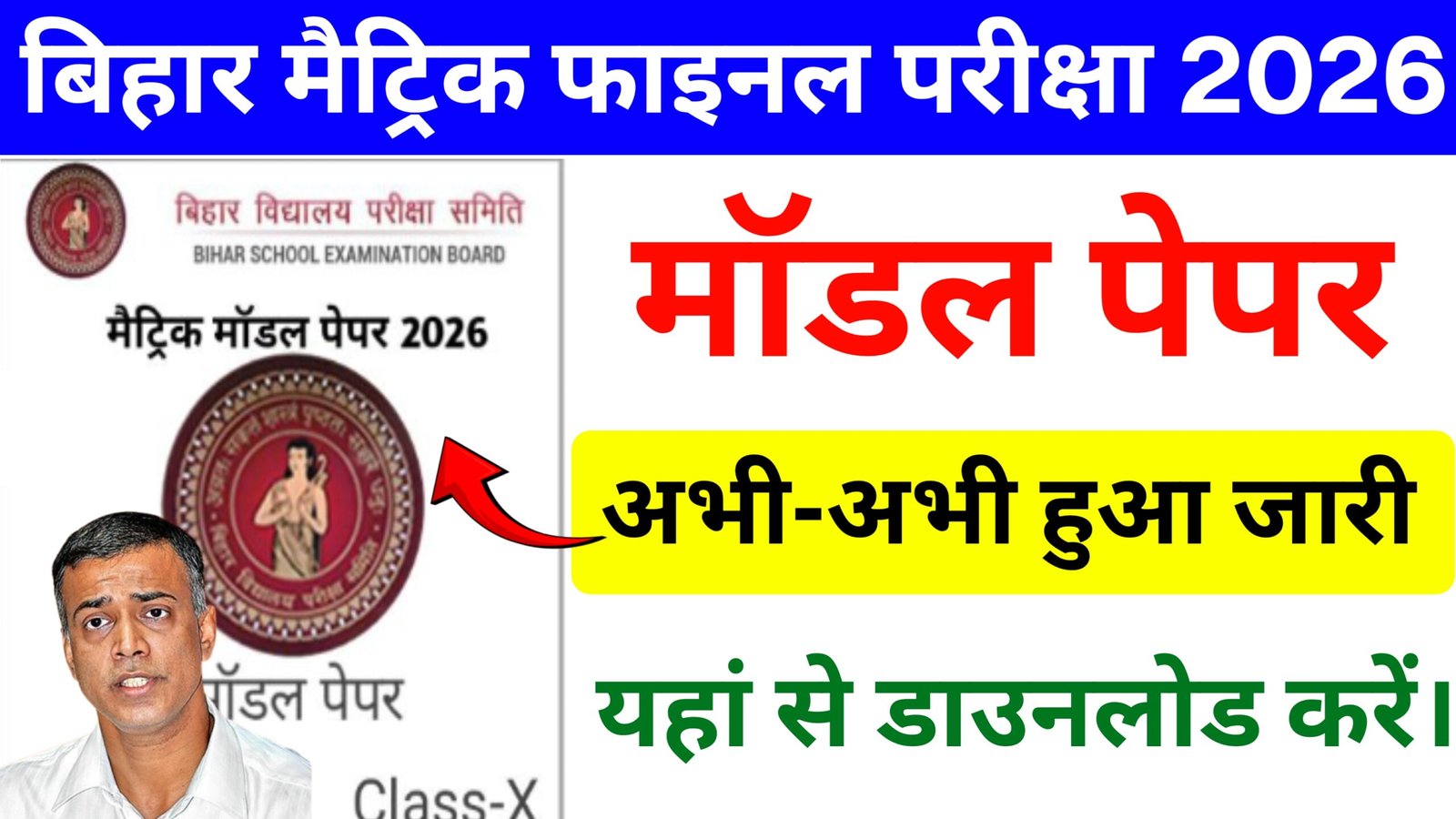अगर आप भी बिहार बोर्ड के तरफ से मैट्रिक की फाइनल परीक्षा 2026 फरवरी में दे रहे हैं और आप फाइनल परीक्षा की तैयारी कर रहे हैं तो आपके लिए खुशखबरी की बात है आप लोग काफी दिनों से इंतजार कर रहे हैं कि कब बिहार बोर्ड के तरफ से जो मैट्रिक फाइनल परीक्षा का ऑफिशियल मॉडल पेपर है यह बिहार बोर्ड के तरफ से जारी किया जाएगा तो अब आपका इंतजार समाप्त हो चुका है