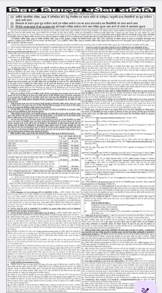 जैसा कि आप सभी जानते हैं कि बिहार बोर्ड द्वारा इंटर फाइनल परीक्षा 2026 का परीक्षा फॉर्म भरना शुरू कर दिया गया है नोटिफिकेशन के अनुसार 19 सितंबर 2025 से लेकर 4 अक्टूबर 2025 तक परीक्षा फॉर्म भरी जाएगी वही जो विद्यार्थी परीक्षा फार्म का पेपर डाउनलोड करना चाहते हैं तो वह बोर्ड के आधिकारिक वेबसाइट seniorsecondary.biharboardonline.com के माध्यम से पेपर प्राप्त कर सकते हैं