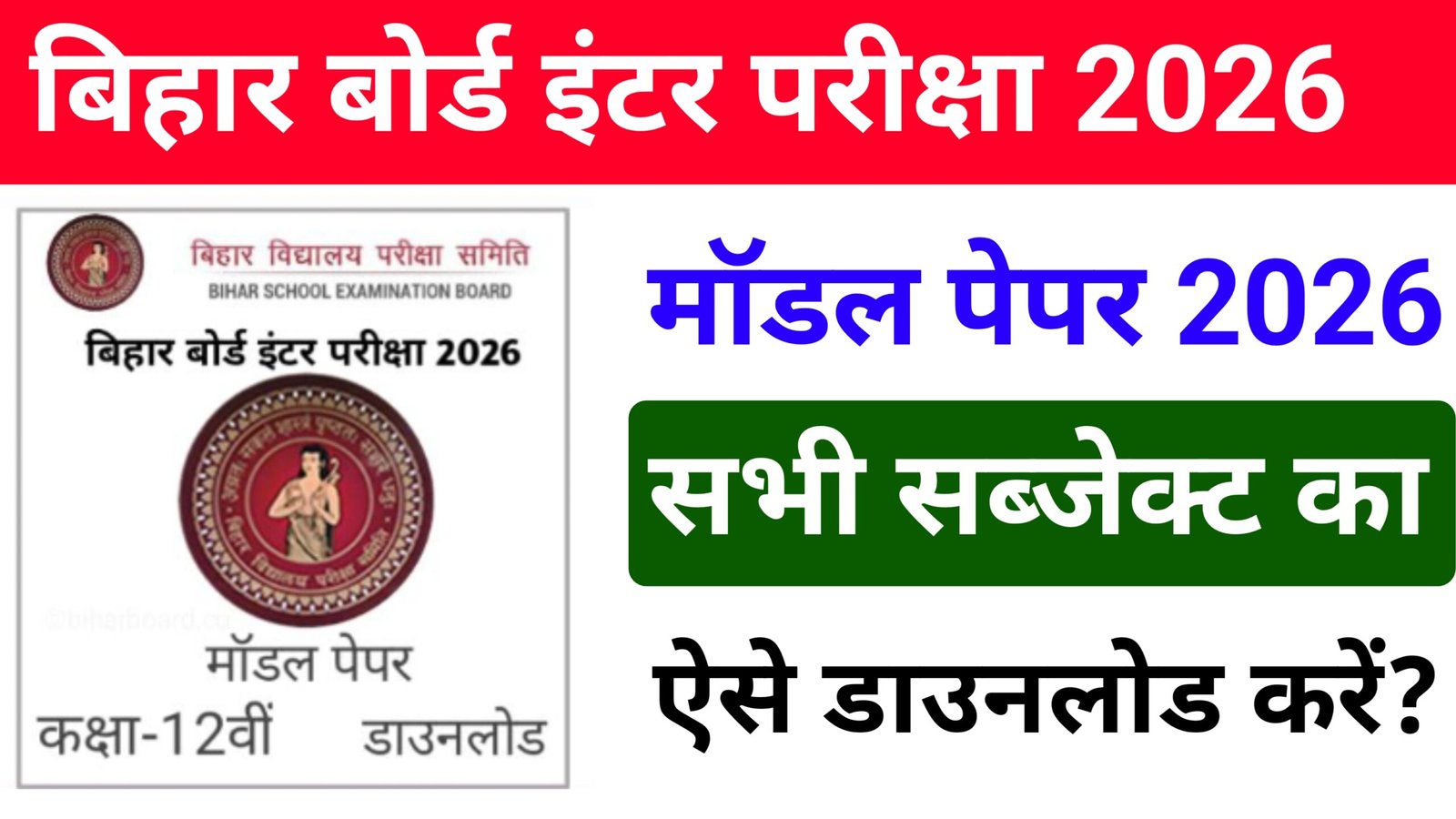 बिहार बोर्ड के तरफ से इंटर फाइनल परीक्षा 2026 का ऑफिशियल मॉडल पेपर आधिकारिक वेबसाइट http://biharboardonline.com/ पर जारी किया जाएगा आप सभी विद्यार्थियों को बतला दे कि आप आधिकारिक वेबसाइट http://biharboardonline.com/ पर जाकर सभी सब्जेक्ट का ऑफिशियल मॉडल पेपर डाउनलोड कर सकते हैं और उसे तैयारी करके परीक्षा में अच्छा मार्क्स ला सकते हैं नीचे हमने आपको ऑफिशियल मॉडल पेपर डाउनलोड करने की पूरी प्रक्रिया बतलाइए और लिंक भी दिया है जिस विषय का आप डाउनलोड करना चाहते हैं क्लिक करके डाउनलोड कर सकते हैं