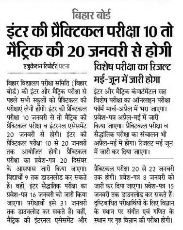 बिहार स्कूल एग्जामिनेशन बोर्ड द्वारा मैट्रिक इंटर प्रैक्टिकल परीक्षा के एडमिट कार्ड की बात करें तो आप सभी विद्यार्थियों को बतला दे कि कई सोशल रिपोर्ट मीडिया रिपोर्ट के अनुसार 5 जनवरी 2026 को मैट्रिक इंटर प्रैक्टिकल परीक्षा का एडमिट कार्ड आधिकारिक वेबसाइट biharboardonline.com पर जारी किया जाएगा।