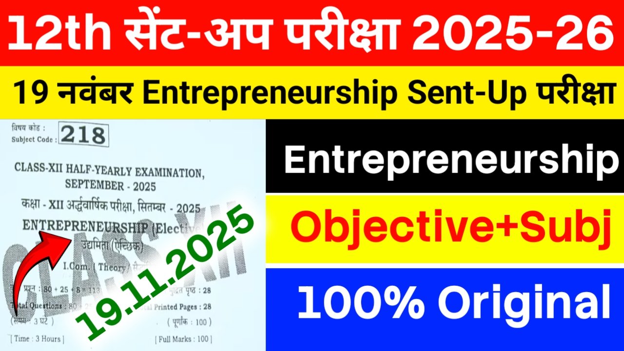 Class 12th Entrepreneurship 19 November Answer Key Sentup Exam 2025: बिहार बोर्ड 12वीं उद्यमिता सेंट-अप परीक्षा का आंसर की, यहाँ से प्राप्त करें।