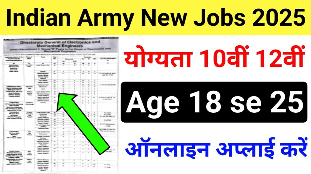 Indian Army Group C Recruitment 2025: इंडियन आर्मी में 10वीं पास ग्रुप सी के 194 पदों पर भर्ती का नोटिफिकेशन जारी:- दोस्तों अगर आप भी एक युवा है और आप इंडियन आर्मी में नौकरी पाना चाहते हैं तो आपके लिए खुशखबरी की बात है क्योंकि इंडियन आर्मी में भर्ती के लिए ऑफिशल नोटिफिकेशन जारी कर … Continue reading Indian Army Group C Recruitment 2025: इंडियन आर्मी में 10वीं पास ग्रुप सी के 194 पदों पर भर्ती का नोटिफिकेशन जारी